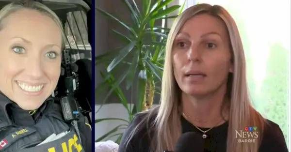 Til venstre: Ontario Provincial Police Const. Amanda Farrell. Til høyre: Chantelle Stamcos. (Bilder via screengrab/CTV News.)
